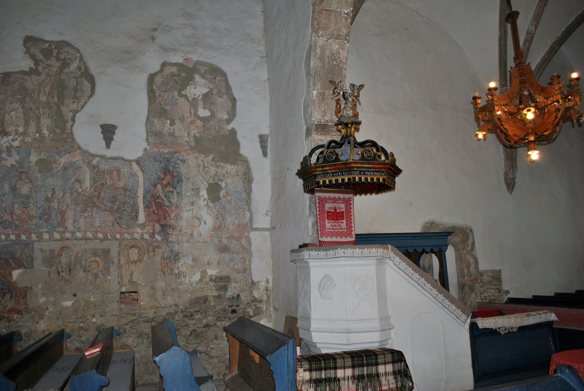 A műemléktemplom külön értékei: a 13-14. századi falképek, a kazettás mennyezet, rovásírásos emlék. A székelyföldi falfestmények zöme a későromán stílus jegyeit hordozza, a legutóbbi helyreállítás során került elő a gótikus szentélyben a 13. századi félköríves falrész. Ez alátámasztja a hajó koraiságát is, amelynek északi és nyugati falán a korai, 14. századi falfestmények ma is láthatók.
