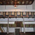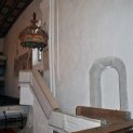 A templom művészeti értékei: a szentély ülőfülkéje, a sekrestyeajtó kerete, és a középkori freskórészlet. Támokkal erősített kőfal övezi a templomot, délen és északon egy- egy bejáróval. A cinterem közepén emelkedik a keletelt, hármas térfűzésű középkori templom, amely több szakaszban épült. A torony a nyugati homlokzatot uralja, négy emeletre osztható, a második szinten csúcsíves- gótikus stílusú, kőkeretes ablak található. A hajó boltozatát 1789-ben kazettás mennyezettel helyettesítették, a hajó átalakítása a 18. század második felén történt. A hajó északi falán 14. századi falképekre találtak, az első kép Árpádházi- Szent Erzsébetet ábrázolja a betegek közt, mindhárom jelenet feltűnően jól komponált, a díszes keretbe foglalt mezőket az alakok teljesen kitöltik.