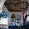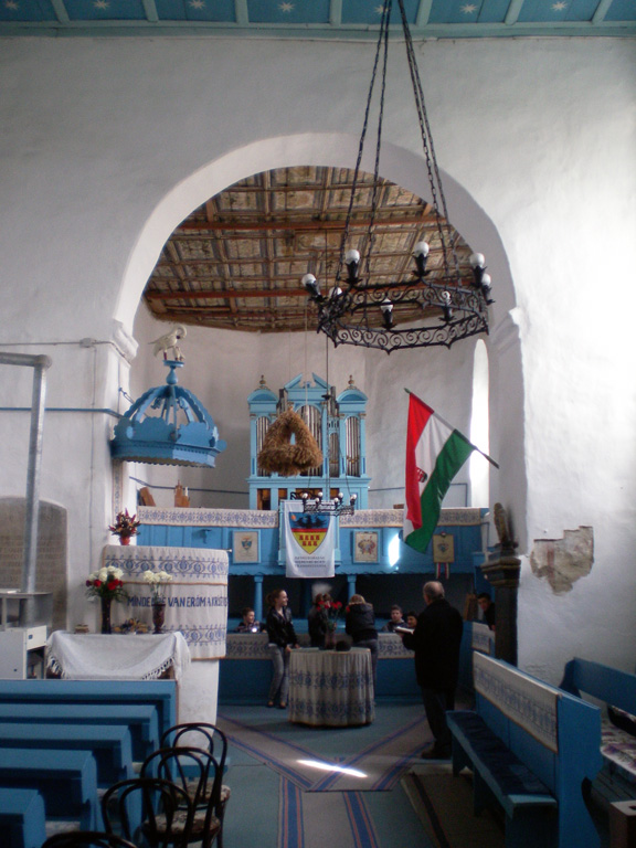 Belseje ma is teljes egészében síkmennyezetű annak ellenére, hogy az épület alacsony, többosztású támpillérsorral van erősítve. A templom sok átalakítást ért meg, belső falait egykor freskó díszítette a görög szentek festett képeivel. A templom mennyezetfestménye a csúcsíves ízlésű templom nagybecsű alkotása, összesen 72 változatos, színes mennyezetminta sorakozik a szentély fölött. A mennyezetfestő Mezőbándi Egerházi János volt, aki 1625-ben festette a kazettákat. A megrendelő Gyulakuta ura, szövérdi Gáspár János, Marosszék főkapitánya és királybírója volt. A gyulakutai templomban van az egyszarvas címerével ellátott, feliratos síremléke. A mennyezet Bethlen címere mellett olvasható B S betűk, az ő második feleségének, Bethlen Zsófiának névbetűi.