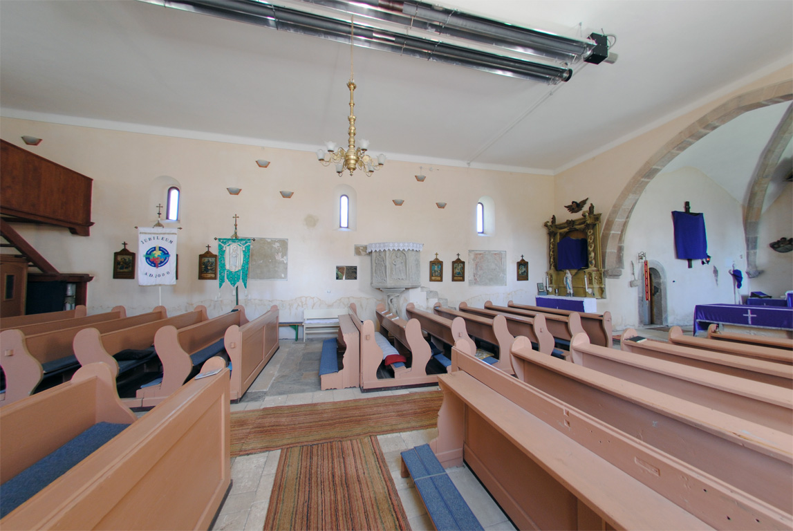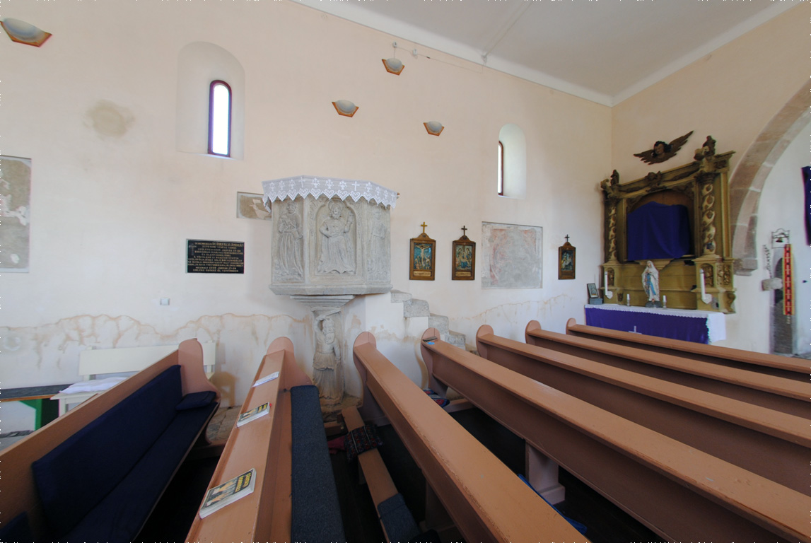 Eredetileg román stílusú, egyszerű lapos mennyezetű bazilikatemplom volt, ekkori a sekrestyeajtó félköríves kerete is. Az 1929-es újításkor a vakolat alól a falon előtüntek a román kori félköríves ablakok, amely azonos a tatárjárás elötti templom ablakaival. Déli és nyugati csúcsíves ajtókeretei a 15. században készültek, az 1450-es években. Mózes alapzatú szószéke a 16. század alkotása: Mózes vállain áll a szószék az evangelisták féldomborműveivel és jelképeikkel. Ugyancsak az 1929-es újításkor került elő a középkori vezeklés érdekes emléke- a szégyenkő.