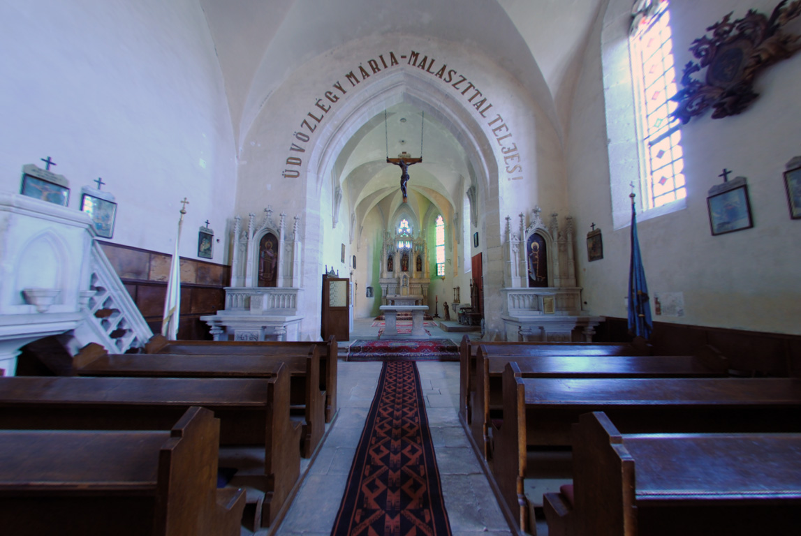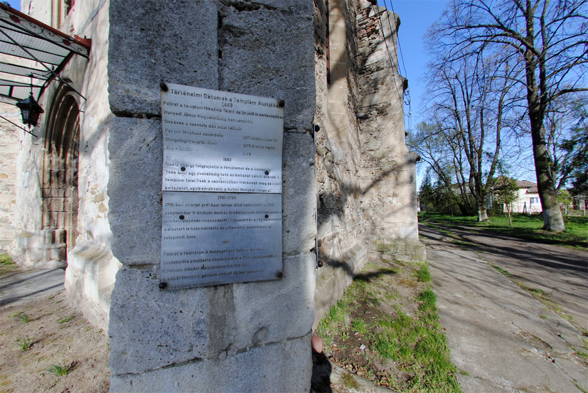 Gyönyörű gótikus templom volt, gótikus bordázattal készült mennyezet, amiből csak a bordaindítások maradtak meg és a sekrestye hollós zárókőbe futó boltozata. Csúcsíves a nyugati bejárat kőkerete, valamint az északi befalazott, szintén csúcsíves ajtókeret, és a magas gótikus ablakok kőrácsainak töredéke. Tornya, a ferences hagyományokhoz hűen, a szentély mellett áll, Hunyadi ugyanis obszerváns ferenceseket telepített a templomhoz csatlakozó, emeletes kolostorba. A törökök a kolostort lerombolták, de a templomot megkímélték, az épületre azonban mégis pusztulás várt, ugyanis a gótikus boltozatok beomlottak és a templom 1701-ig fedél nélkül küszködött a romboló idővel. Ekkor Apor István hozatta rendbe, aki átutaztában megígérte feleségének, hogy felújíttatja, hiszen: "Mily kár, hogy ily szép épületek ily pusztán állanak". Bárcsak a mai korban is lennének ily nemes és nagyvonalú főurak a történelmünkben. Az 1701-ben megújult templom három oltárt kapott, amelyek helyett Csató Ferenc plébános 1895-ben gyönyörű gótikus oltárokat faragtatott kőből. Falai nemcsak Hunyadit látták, hanem Kapisztrán Szent Jánost is, aki 1455 karácsonyát itt töltötte.